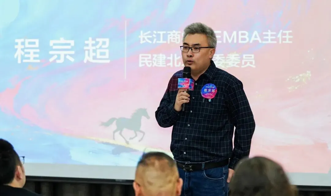 长江商学院EMBA项目主任程宗超老师带来精彩致辞,他充分肯定了新疆校友们强大的凝聚力、终身学习的意愿和拥抱新技术的积极心态。随后,程老师分享了学院新一年课程体系的更新迭代、专业方向课程设置的逻辑,由此突出了长江的差异化,他的分享为校友们在新的一年把握方向、推动事业迈向新高度提供清晰指引。