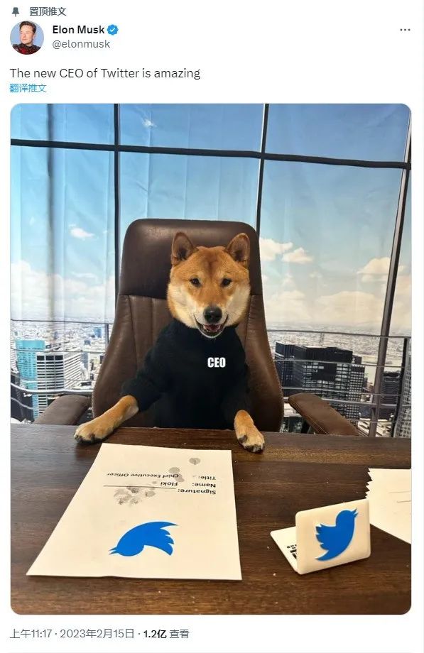 老马发的梗图并置顶的推文,称推特下一任CEO将是Floki,狗子很棒!