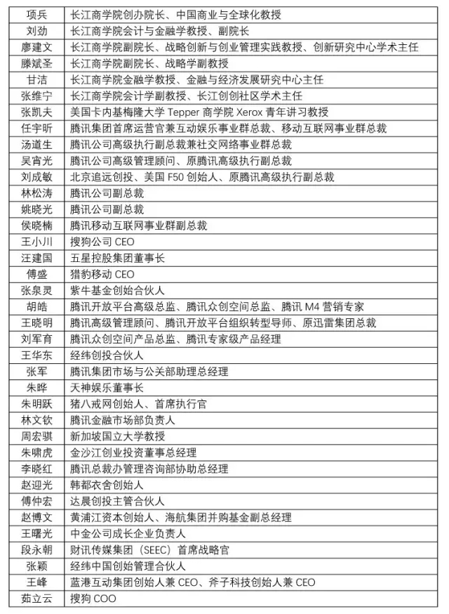 3、有知名企业家/投资机构合伙人/知名长江校友/青腾导师、校友推荐
