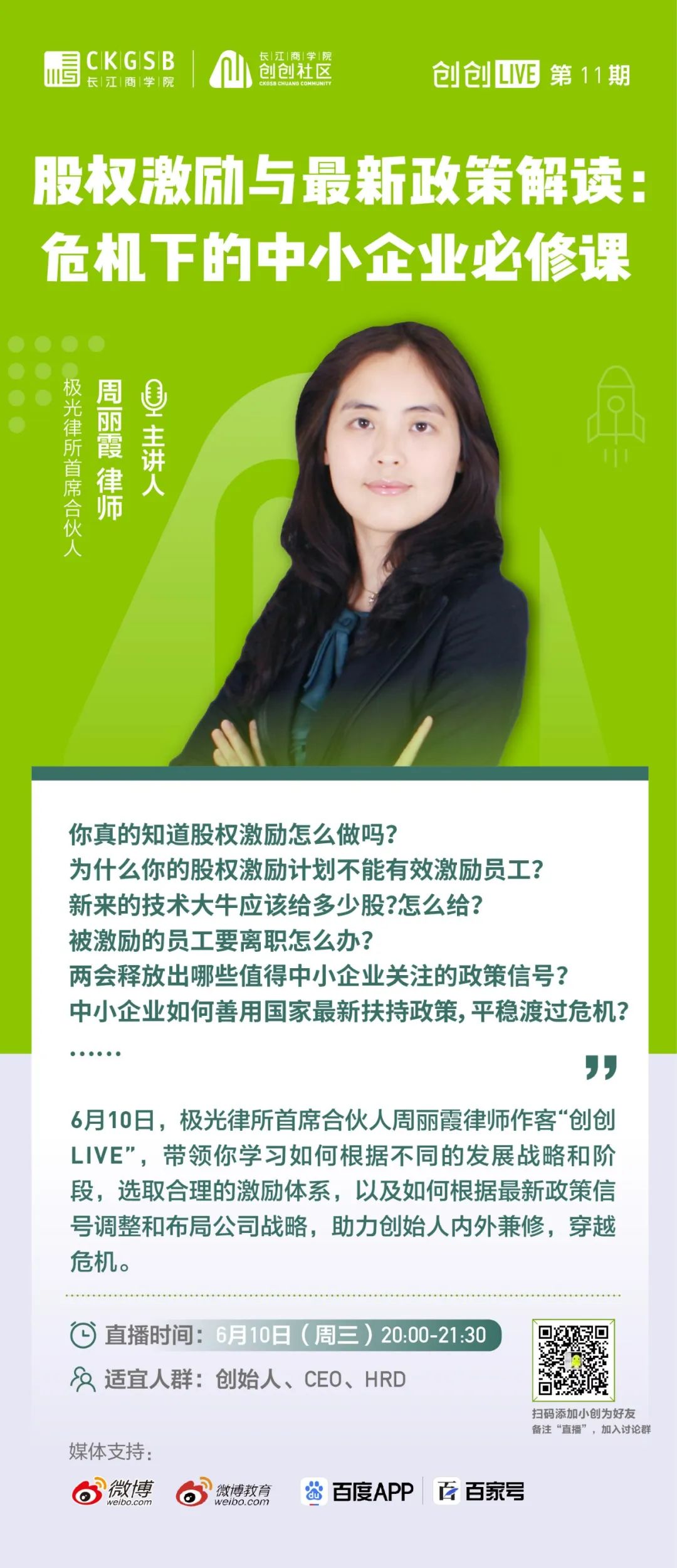 报名开启!股权激励与最新政策解读:危机下的中小企业必修课 | 创创LIVE第11期