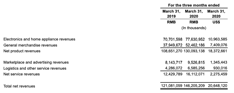 图源:京东2020年一季度财报