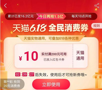 • 京东联合多地政府以消费券的形式带来消费红包。6月6日,首批300万张北京消费券在京东APP发放。