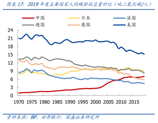 从人均水平看,我国人均碳排放自21世纪以来明显抬升,陆续超越法国和英国,现已逼近德国和日本。