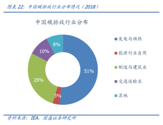 从减少排放这个思路来看,最大的机会一定藏在排碳最多的地方,因为这些地方将迎来最剧烈的变化。来看看这张图,我国碳排放集中在发电与供热部门,占比达到51%;其次是制造与建筑业,占比28%,然后才是交通运输,占比10%。