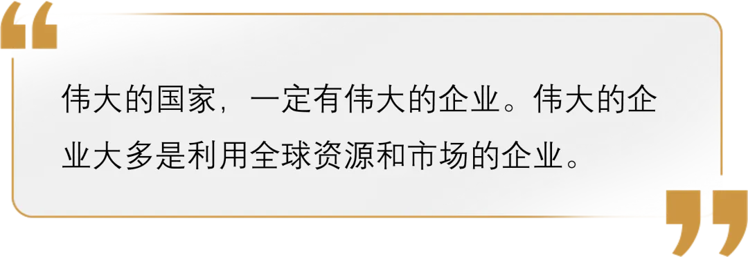 “伟大的国家,一定有伟大的企业。伟大的企业大多是利用全球资源和市场的企业。”