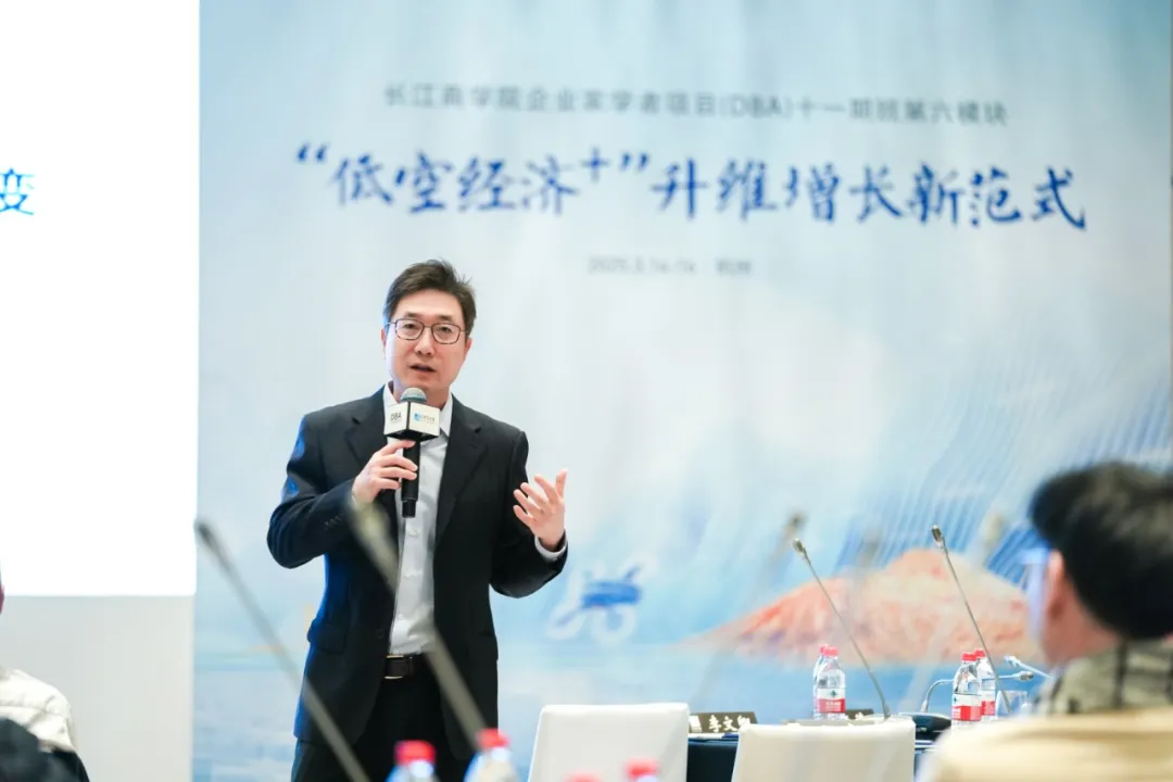 课程还邀请到中国民用航空局原副局长、中国航空学会低空经济首席专家董志毅,他以“论道低空经济”为主题,阐述了低空经济与新质生产力的关联,梳理了其概念、发展现状及未来趋势,为DBA同学们提供了低空经济领域丰富的行业知识与发展思路,助力其把握相关产业机遇。